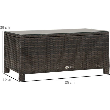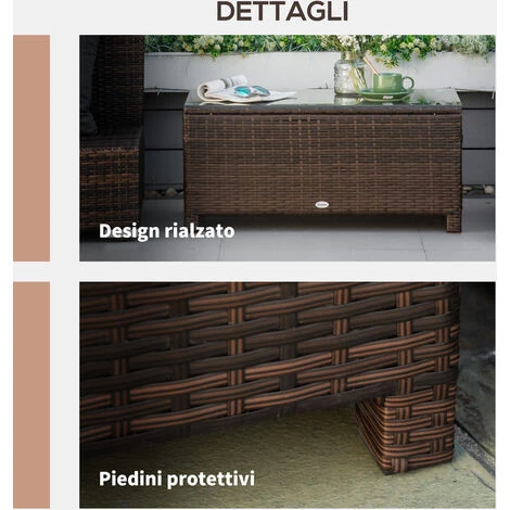 Questo tavolino Outsunny è ideale per spazi esterni come giardino, balcone, terrazzo, ecc. Rivestimento in rattan resistente alle intemperie. Piano in vetro temperato da 5mm sicuro e stabile. Design moderno.