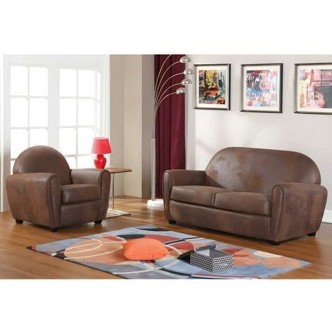Divano e poltrona VICTORY II in microfibra con effetto cuoio invecchiato