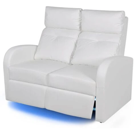 Questo divano moderno è dotato di una striscia LED che emette 16 colori lungo il poggiapiedi. La luce viene azionata con il telecomando incluso e dispone di effetti strobo, flash, soffusa e sbiadita. Questa poltrona doppia reclinabile di alta qualità dispone di ampie sedute e cuscini imbottiti per il massimo comfort. Si reclina facilmente alla posizione più comoda. Rivestita in pelle artificiale lucida, questa poltrona reclinabile è invitante e facile da pulire.