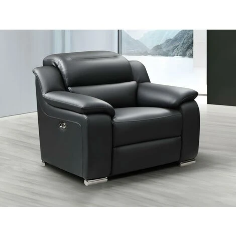 Poltrona relax elettrico ARENA in pelle di vacchetta con spessore 0,9 mm – 1,1 mm. Fiore corretto e pigmentato. Pelle conciata ai sali di cromo. Colore: nero