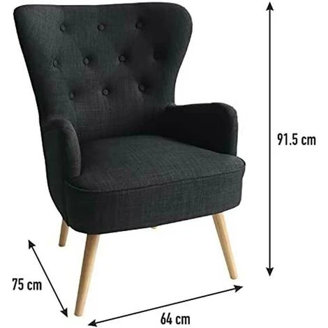 1 x Poltrona Sedia Relax Tessuto Piedi in Legno Imbottita Design Moderno Grafite