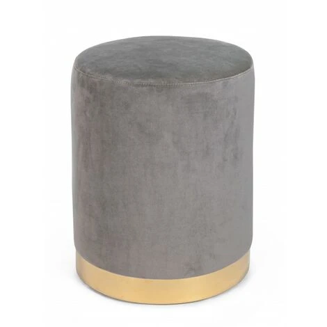 Pouf con struttura in legno di pino e MDF rivestito in microfibra poliestere 100% effetto velluto dallo stile contemporaneo. Densità imbottitura 36kg/mc. Base inferiore rifinita in acciaio verniciato a polvere epossidica color oro. Questo pouf dallo stile moderno è ideale per arredare e dare un tocco di originalita a qualsiasi ambiente domestico. Ottimo rapporto qualità/prezzo. Misure: Diametro 35 cm; Altezza 40 cm.