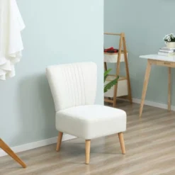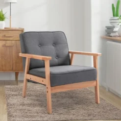 Homcom Poltrona Stile Nordico Retrò In Legno Con Rivestimento In Lino Grigio Chiaro