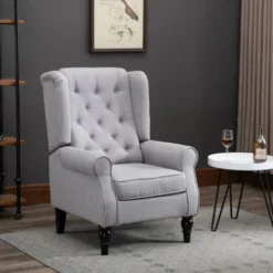Homcom Poltrona Chesterfield In Tessuto Sfoderabile Con Ampia Seduta Grigio 76 X 86 X 108 Cm