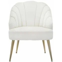 Poltrona Elegante, Velluto Crema, Gambe Metallo Dorate 65x69x84cm Shell