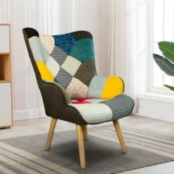 Poltrona Sedia Design Moderno Con Braccioli Patchwork Patchy Chic