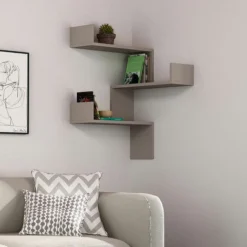 Mensola Scaffale Angolare Da Parete 3 Piani Salvaspazio Tortora 60 X 22 X 90H Cm