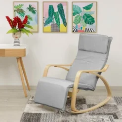 Nova Sedia A Dondolo Struttura In Legno Chiaro Seduta In Tessuto Design Classico Colore : Nero
