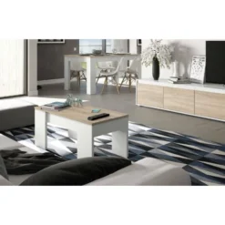 Tavolino Con Piano Sollevabile TARA Effetto Legno E Cemento Bianco