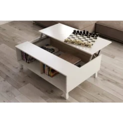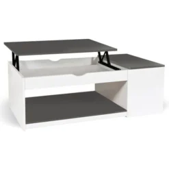 Tavolino Elevabile ELEA Con Scatola In Legno Bianco E Grigio