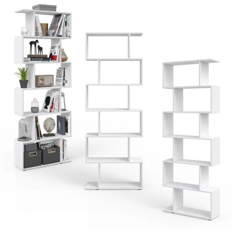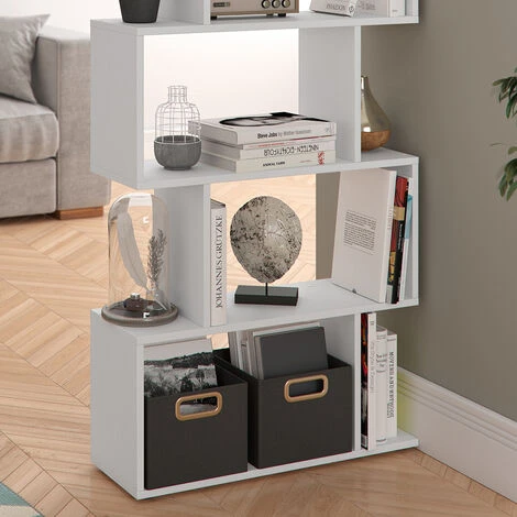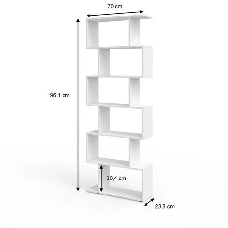 Pratico scaffale decorativo dotato di 6 spaziosi scomparti nelle variazioni cromatiche di bianco, cemento e rovere.