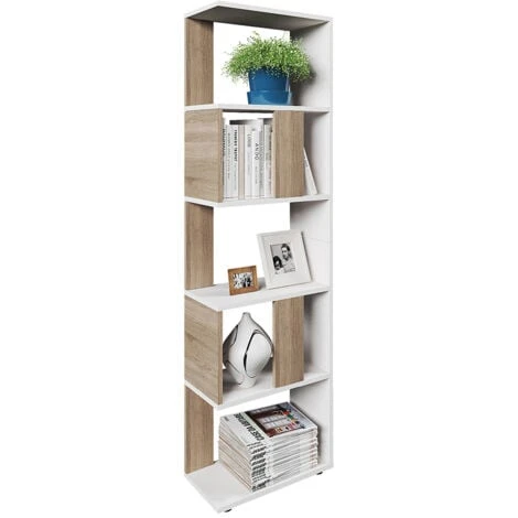 Pratico scaffale decorativo dotato di 5 spaziosi scomparti nelle variazioni cromatiche di cemento, antracite e rovere.