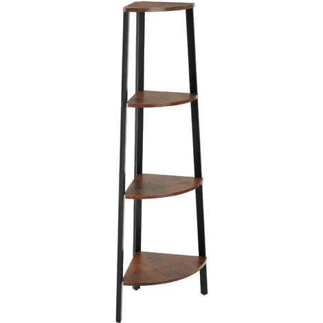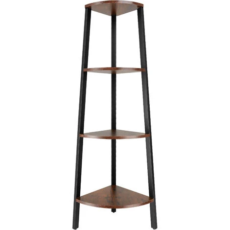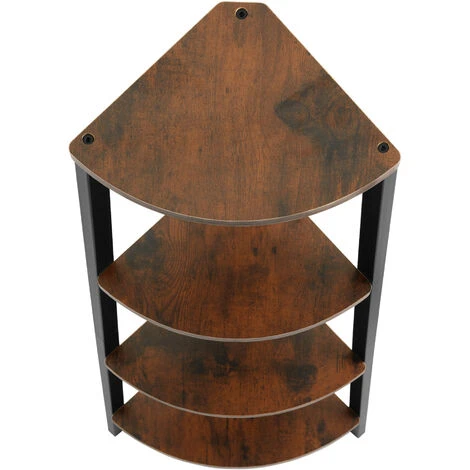 - Rustico scaffale ad angolo con quattro ripiani disposti in modo sfalsato