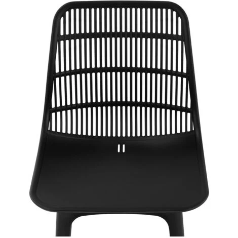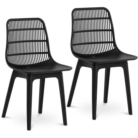 La sedia da cucina in nero sobrio e in resistente plastica (PP) offre una superficie di seduta molto ampia. Lo schienale dispone di una griglia perforata continua ed è quindi particolarmente permeabile all’aria, rendendo la seduta molto confortevole anche in estate. Le sedie in questo set da 2 sostengono un peso max. di 150 kg l’una e non scricchiolano neanche sotto il peso massimo. Le sedie da cucina ergonomiche con schienale alto sono perfette per godersi una lunga pausa, sia essa al bar o nella stanza ristoro di un ufficio.