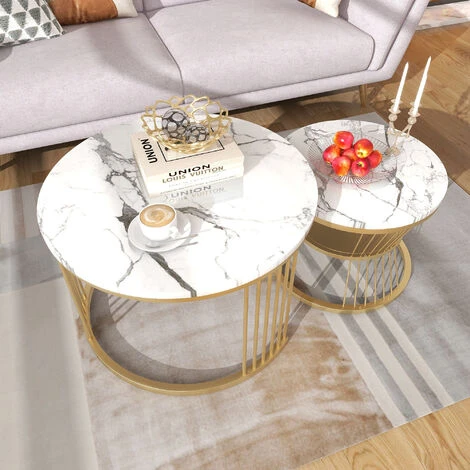 Un motivo in marmo lucido aggiunge profondità e spazio visivo a questo tavolino da caffè unico.