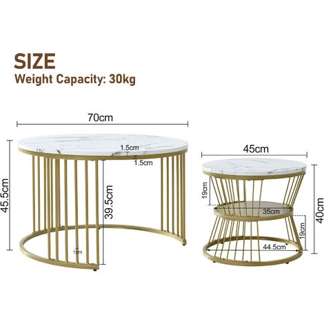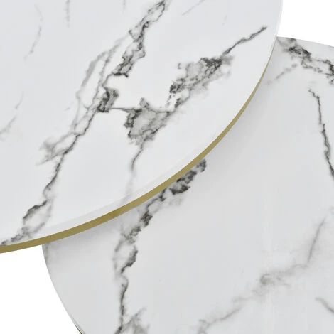 Il tavolo rotondo è realizzato in MDF con una superficie finemente dettagliata facile da pulire e la struttura in metallo garantisce un’eccellente stabilità e durata.