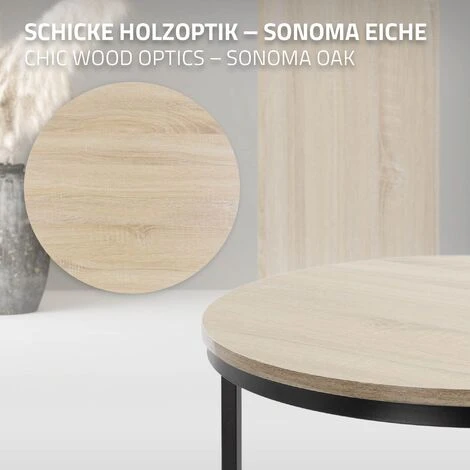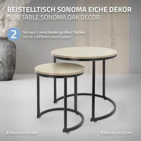 Il piano in Rovere-Sonoma conferisce ai tavoli un aspetto chic e senza tempo che si adatta perfettamente a qualsiasi interno. Come superficie di appoggio per le bevande o come postazione di lavoro aggiuntiva, questi tavoli sono versatili e possono essere utilizzati singolarmente o insieme. Scoprite voi stessi questo pratico ed elegante set di tavolini da caffè!