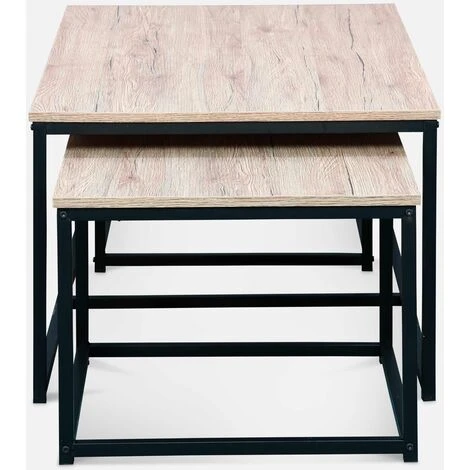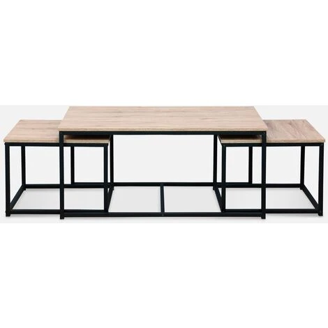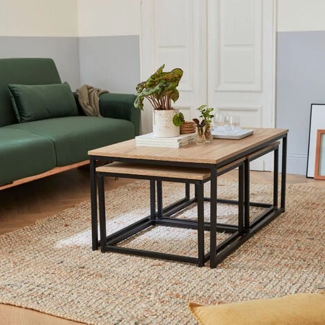 Create un’atmosfera stile loft in casa vostra con questi 3 tavolini gigogne che combinano perfettamente decorazioni in metallo e legno. Le linee rette vi sedurranno a prima vista. Da utilizzare come tavolino da salotto o in fondo al divano, per i vostri aperitivi e caffè con gli amici o la famiglia. Il tavolo rettangolare e i tavolini quadrati sono incassati per ottimizzare lo spazio.