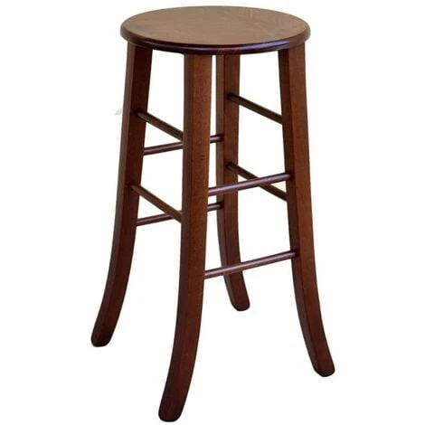 Sgabello con seduta rotonda interamente realizzato in legno massiccio massello altezza 67 cm da terra alla seduta noce scuro ,