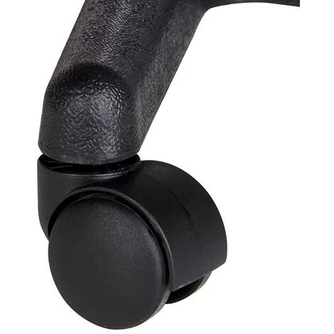 La solida base a 5 razze in plastica dura garantisce un eccellente stabilità alla sedia e le ruote antigraffio permettono un facile spostamento di quest’ultima su qualsiasi tipo di pavimento.
