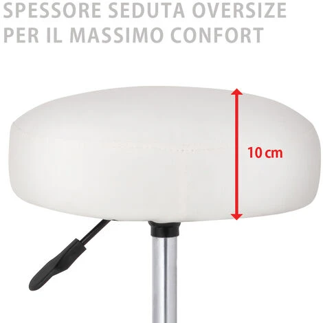 1 x Sgabello Estetista Girevole Seduta Imbottita 10 cm Ecopelle Salone Studio Bianco