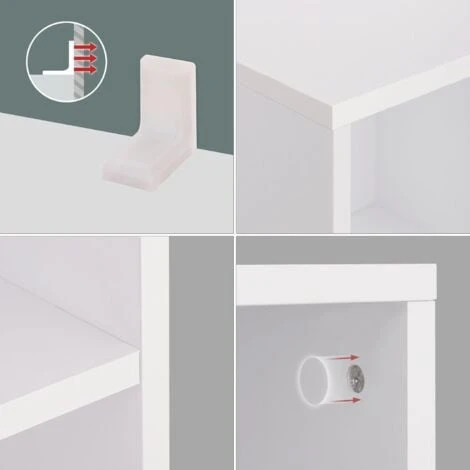 2.Più sicuro: I pannelli laterali presentano scanalature per inserire facilmente il pannello posteriore; aggiornato con clip per il pannello posteriore e viene fornito con un esclusivo dispositivo antiribaltamento per stabilizzare e ancorare lo scaffale