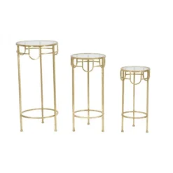 Dmora Tris Di Tavolini, Ferro E Vetro, Colore Oro, Misure: 33 X 33 X 70 Cm, Con Imballo Rinforzato