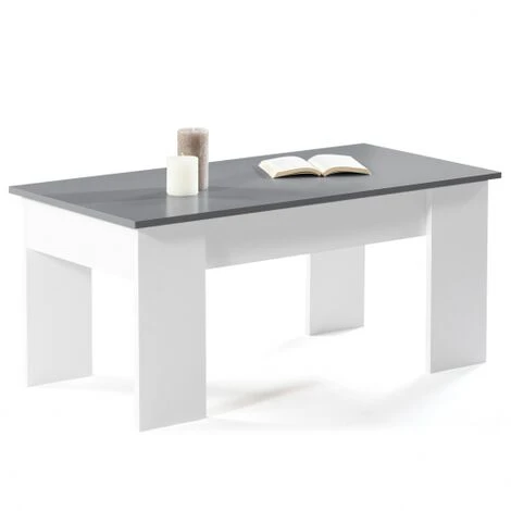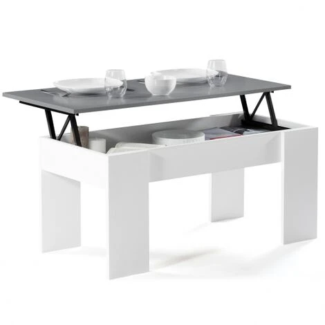 Tavolino Con Piano Sollevabile TARA Legno Bianco E Grigio