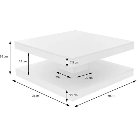 Tavolino quadrato con piano superiore che può essere ruotato di 360°