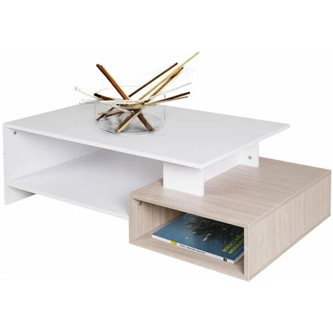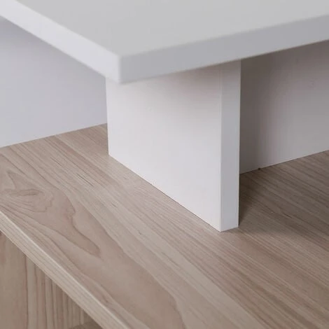 Realizzato con una solida struttura in legno MDF di altissima qualità in un elegantissimo colore bianco con ripiano inferiore in colore quercia che dona un tocco davvero unico a questo fantastico coffee table.