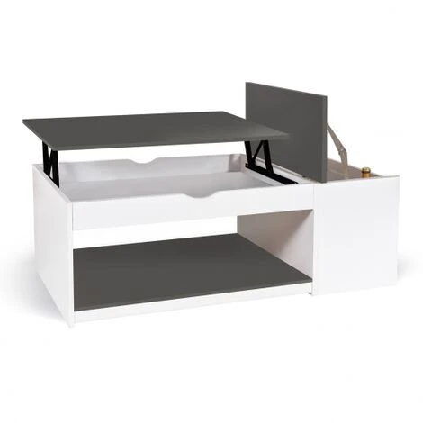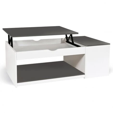 Questo tavolino starĂ benissimo nel vostro salotto! SarĂ una vera risorsa per un interno moderno e ordinato! SarĂ perfetto per un interno moderno e ordinato: potrete mangiare davanti alla vostra serie TV preferita o lavorare comodamente dal vostro divano.Questo tavolino sarĂ perfetto sia in salotto che in sala da pranzo. Il box laterale, alto 40 cm, è perfetto per riporre alcune bottiglie e le vostre bibite. Infine, il ripiano inferiore offre uno spazio aperto dove riporre telecomandi, programmi TV e riviste, in modo da non tralasciare nulla!Questo tavolino da caffè farĂ un figurone nel vostro salotto grazie al suo piano in legno grigio e bianco.SarĂ perfetto per chi vuole rilassarsi o lavorare in tutta comoditĂ !Dimensioni del tavolino bicolore ELEADimensioni d’ingombro: lunghezza 110 cm x larghezza 60 cm x altezza 45 cmDimensioni interne del piano del tavolo: lunghezza 77 x larghezza 56,5 x altezza 7,5 cmDimensioni interne della scatola laterale: lunghezza 56 x larghezza 28 x altezza 40 cmMateriali : Truciolato rivestito in melaminaPer l’autoassemblaggioQuesto modello è disponibile anche in altri colori: legno bianco, legno bianco e faggio, legno nero e faggio, legno grigio e faggio, faggio e bianco.Potete trovare tutti i nostri tavolini con piano sollevabile nel nostro negozio online!