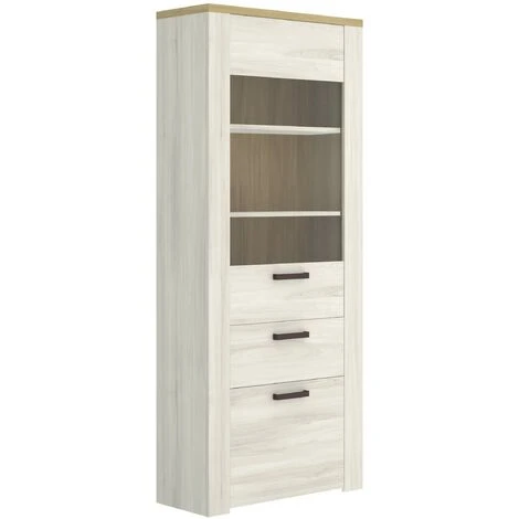 Vetrina alta 188 cm Amelia Rovere sbiancato e Rovere chiaro con due ante ed un cassetto
