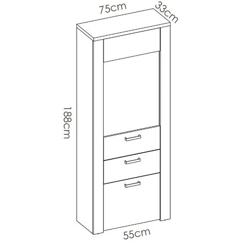 - Con anta in vetro, che ci permette di vedere i ripiani interni, un pratico cassetto al centro e un’anta inferiore.