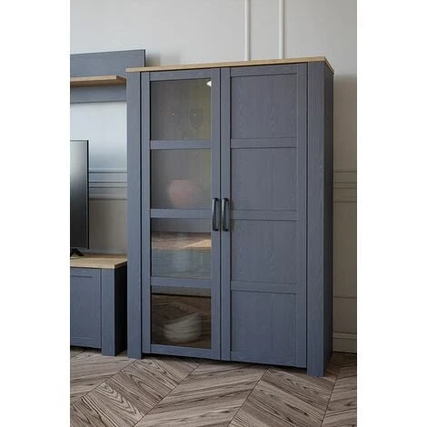 La vetrina presenta uno stile contemporaneo, la lavorazione delle ante che forma 4 quadrati assicura un design unico che caratterizza ogni soggiorno. Pensata per un utilizzo quotidiano la vetrina offre un’ampia capienza, grazie ai 6 ripiani presenti. La particolarità sta nelle ante; una in vetro temprato mentre l’altra in una intensa finitura Rovere navy. Della stessa collezione, Idee casa, è possibile trovare altre madie con ante e cassetti, vetrine, basi tv e tavoli per creare il proprio soggiorno e arredare casa con grande stile!