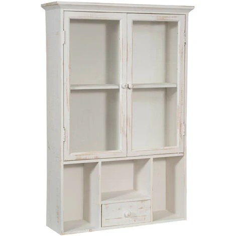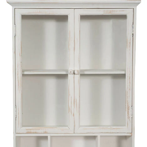 MATERIALE ROBUSTO: La vetrinetta soggiorno è realizzata in legno massello di Paulonia, materiale resistente e durevole, e rivestita con vernice bianca anticata.