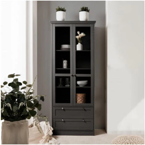 Vetrina soggiorno 200 cm Grigio antracite con due ante e e due cassetti