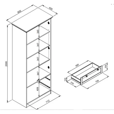 - L’anta con vetro permette di rendere visibili gli accessori all’interno della vetrina
