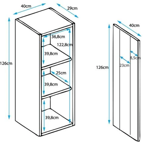 Larghezza: 40cm x Altezza: 126cm x Profondità: 29 cm.