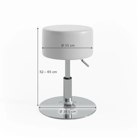 Con un diametro di 33,5 cm, lo sgabello offre la manovrabilità e il comfort che hai sempre cercato. La solida struttura garantisce una stabilità sufficientemente sicura. È regolabile in altezza grazie all’elegante manopola presente sotto alla seduta e può essere ruotato di 360° in qualsiasi momento senza assistenza meccanica.