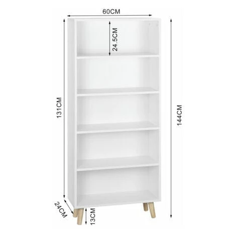 ●SCOMPARTI A GIORNO: questa libreria moderna da 60x24x144cm è. composta da 5 scomparti a giorno (ogni scomparto è. alto 24.5cm e può. reggere 15kg). Potrai così. sistemare libri. CD e altro in base alla categoria e trovarli più. facilmente