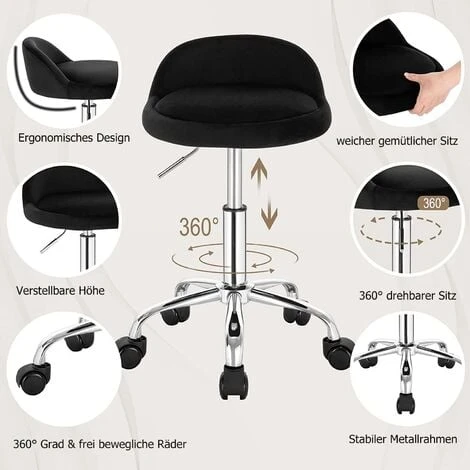 STABILE E SICURO: con un telaio in metallo cromato e 5 rotelle. questa sedia da salone è. stabile per reggere un peso fino a 120kg. Le rotelle in PU rotolano silenziosamente e non danneggiano il pavimento